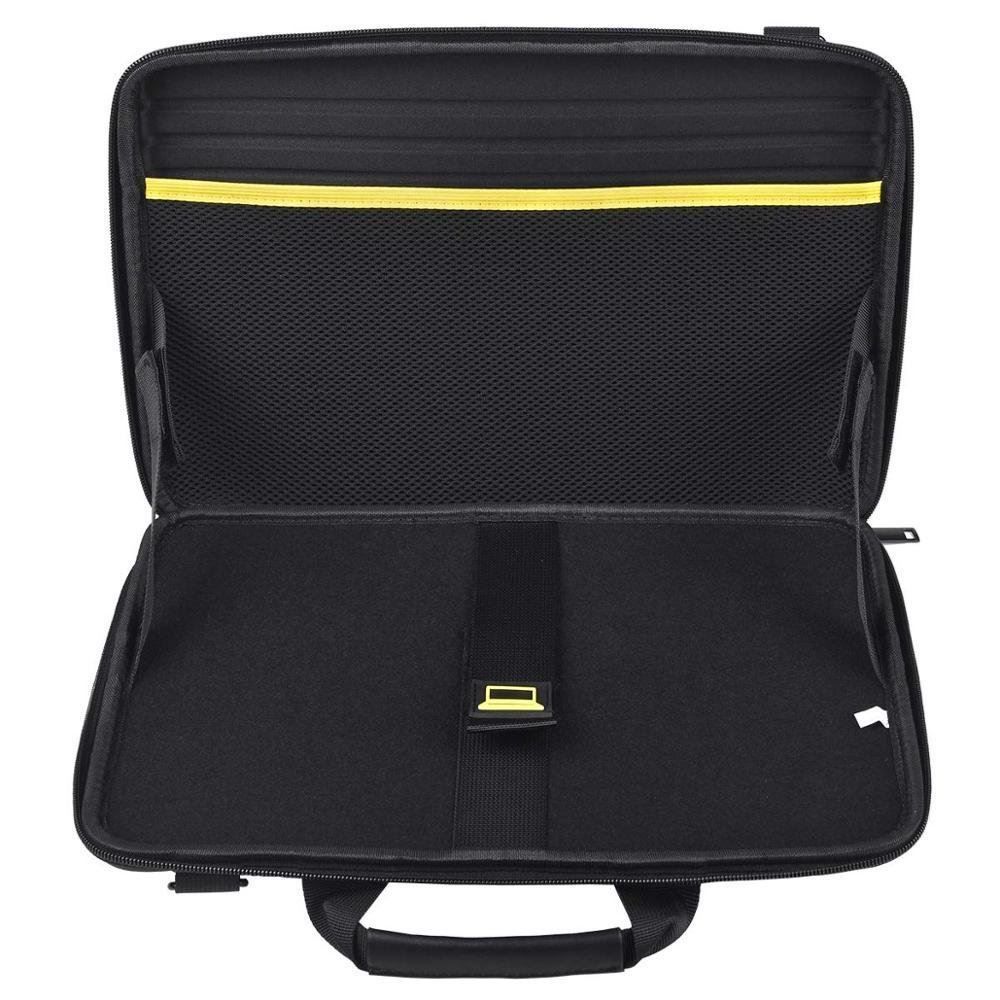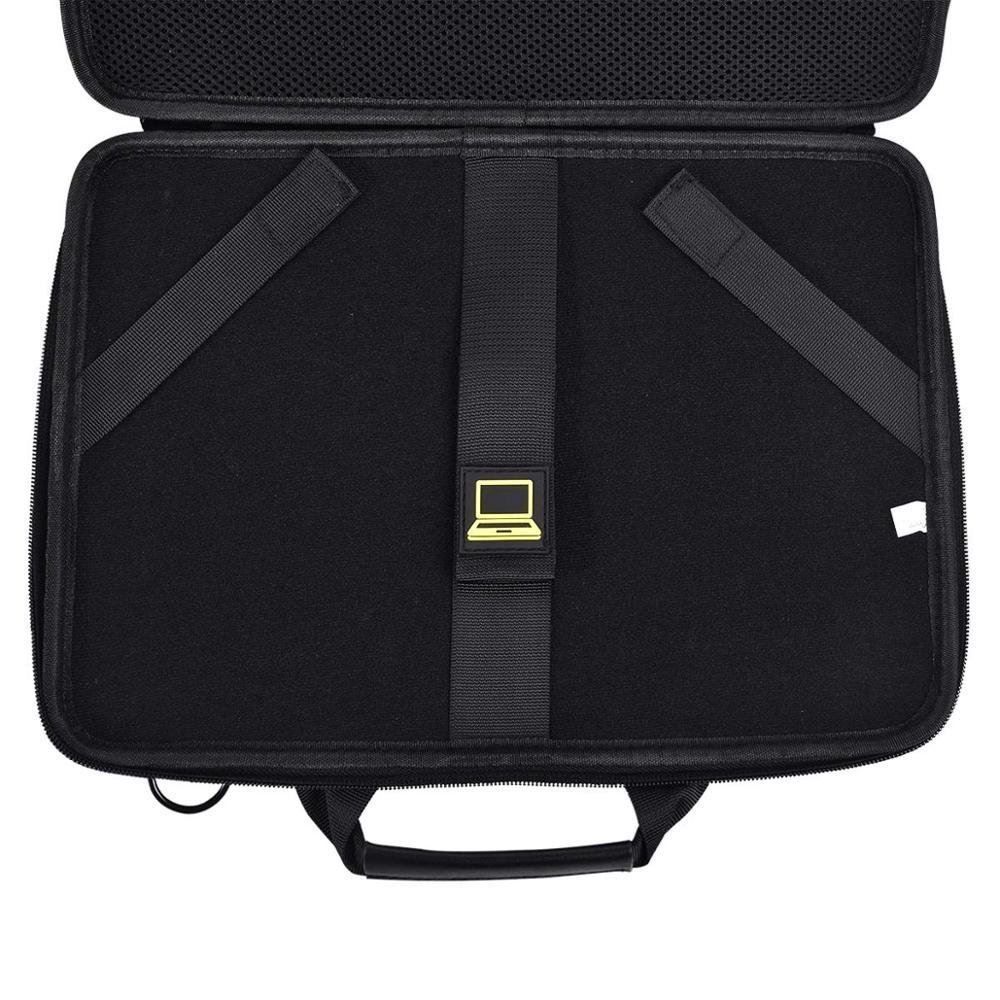 Hartes EVA aus hochwertigem Reißverschluss in offener Ausführung. Ein Klettverschluss auf einer Seite kann Ihren Laptop sicher befestigen, kein Rütteln im Inneren. Eine weitere Netztasche mit Schaumstoffpolster kann Adapter, Kabel und andere kleine Gegenstände aufnehmen. Kategorisieren Sie Ihre Sachen, um Kratzer auf Ihrem Laptop zu vermeiden.